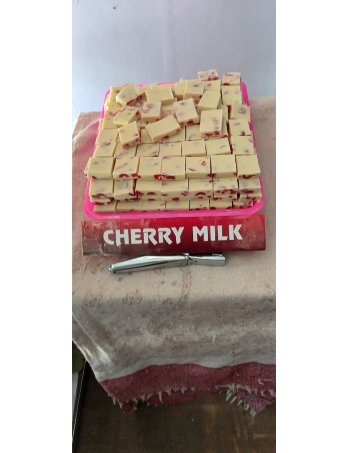 Indulge in the rich creaminess of milk chocolate blended with the sweet, tangy burst of cherries. Each bite is a perfect harmony of smoothness and fruity delight, crafted to melt in your mouth and awaken your senses. A true German classic, made with passion and premium quality, to give you the taste of pure happiness.